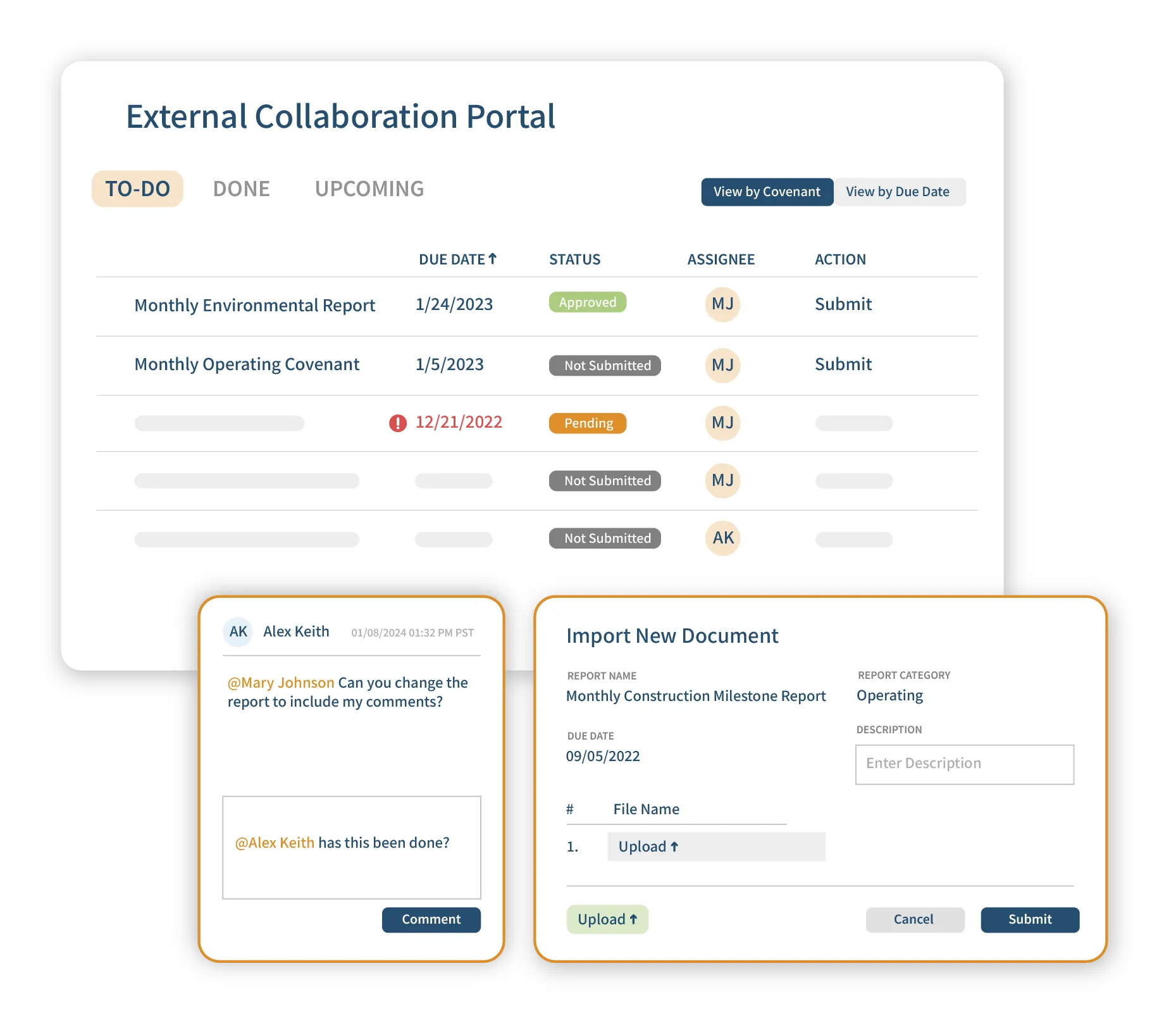 Stay on top of deadlines, key results, and covenant performance.